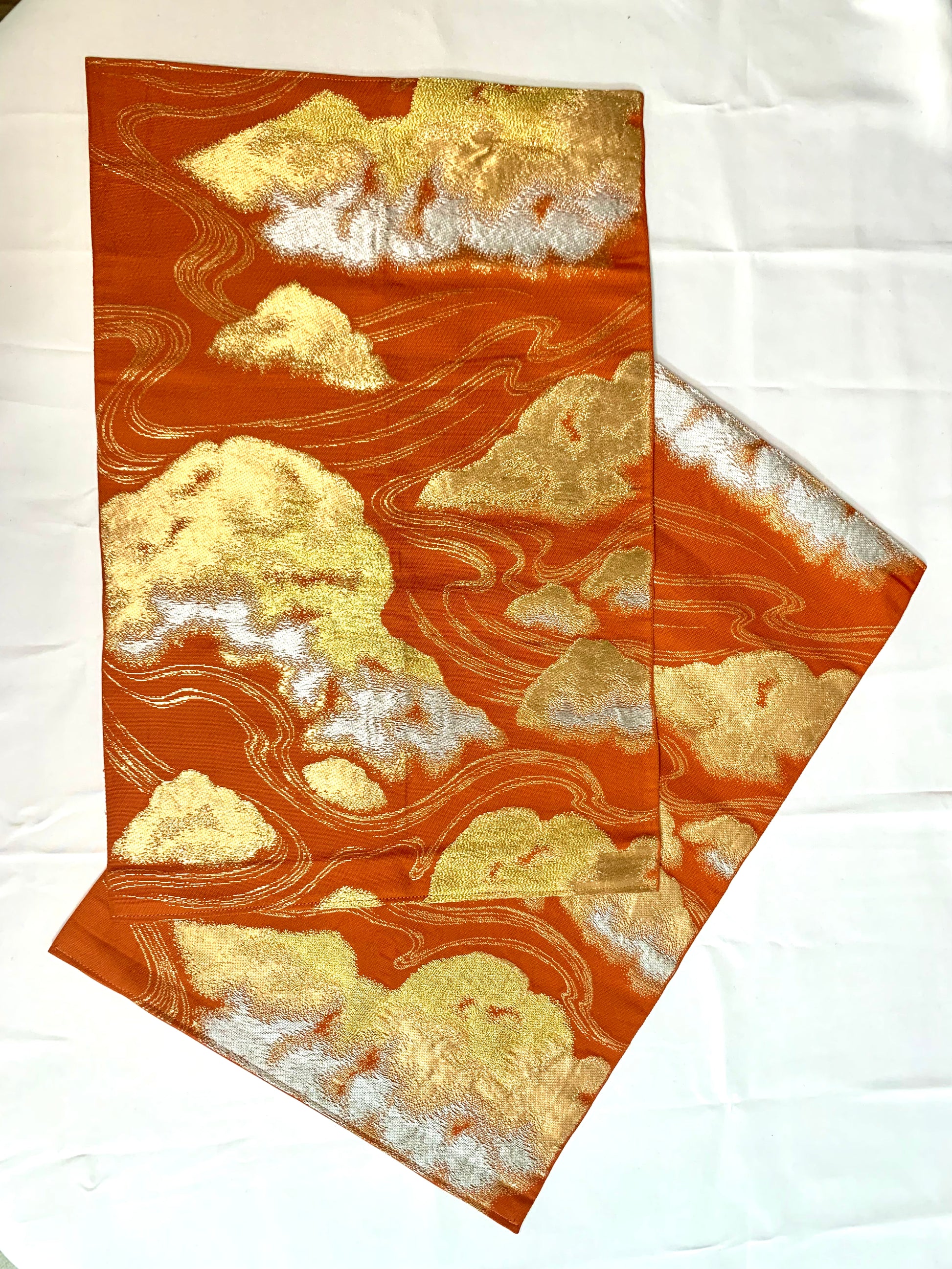 こちらの帯の生地を使用したランチョンマットは、テーブルに華やかさを加えます。高級感のあるデザインと実用性を兼ね備えた、帯生地のランチョンマットを是非お試しください。